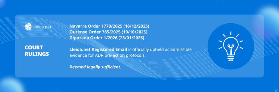 The difference between admitting a lawsuit or not can lie in a single detail: whether the medium used to communicate the ADR leaves a reliable evidentiary trail. The registered email from Lleida.net is designed precisely so that this trail exists and is recognised by the courts.