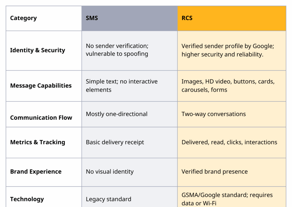 RCS enables richer content, clearer guidance and a recognisable brand presence , all within the user’s native messaging app.