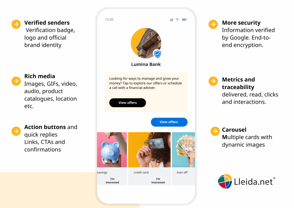 In its business version, RCS allows companies to communicate through a verified channel, include relevant business information and benefit from traceable message delivery.